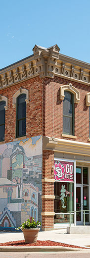 A local development company leapt at the chance to create meaningful improvements to historic Main Street. Generous offices were planned to recruit and retain the best staff, with centralized collaborative space. A Vermillion-red tiled cube is the focal point of the shared entry, reflecting the primary school color of the university and the namesake color of the college town. The cube houses a small conference room available to small groups and individuals working with the company.