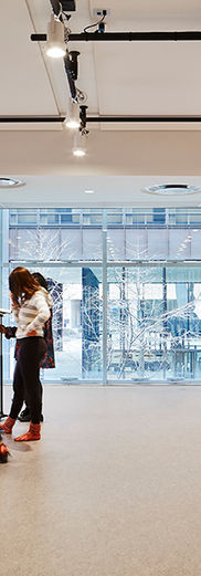 At The Alice, the Goodman Theatre’s new Center for Education and Engagement, warm materials are used to transform a vacant office space into a welcoming and inspiring environment that serves all ages and backgrounds. The project includes STEM learning labs, an auditioning studio, a reception and lobby space. A two-sided acoustical wood feature wall---assembled to allude to a Venetian contour curtain--meanders through the space to dissipate and absorb sound within STEM learning labs and reception spaces.
