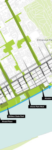 Building on a ten-year initiative led by the Detroit RiverFront Conservancy, SOM developed a framework plan for Detroit’s East Riverfront District. Designed to preserve more riverfront land for public use, generate greater community access to the Detroit River, and spur investment along the East Riverfront, the project seeks to continue the transformation of the East Riverfront area from a blighted, industrial area into a vibrant public waterfront accessible to all Detroit residents.