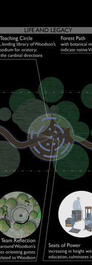A seminar of multidiscipinary students created design proposals for the Birth site of Carter G. Woodson in Buckingham County, Virginia. Woodson was an educator, author, and founder of the Association for the Study of Negro Life and History (now the Association for the Study of African American Life and History). Students primarily dedicated the semester to project research, programming, and schematic development directly with stakeholders.