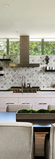 A new construction, on a stream and within a flood plain. The more challenging sites are opportunities for the most creative solutions. The home is elevated above the base flood elevations and cantilevers in every direction. Below the home sits a large covered patio, above lies a roof deck. They both open up to the stream while the vertical circulation connecting it all together is expressed in the architecture through the full height glazing.