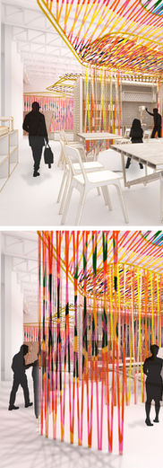 Stitch City is a design-build, community design hub envisioned as a prototype to activate vacant storefront blocks while building inclusive relationships across Detroit’s creative networks and local communities. A continuously responsive design strategy enables community authorship through workshops, trades skills course, and youth education programs. The materiality of the hub reflects the energy and identity of community through woven patterns of colorful recycled billboard tarps and dyed felt.