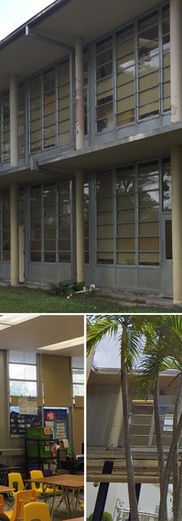 Building replacement is not always an option & this 1957 school was in dire need of restoration: extensive remodeling & infrastructure upgrades (MEP, restrooms, finishes, parking, courts) throughout 315,400sf on a 25acre campus. The major, most visible being 28,000sf of window walls replaced with 4 glazing colors varying in size and configuration creating sophisticated yet playful interior & exterior atmospheres allowing clear natural light into all classrooms enhancing the learning environment.