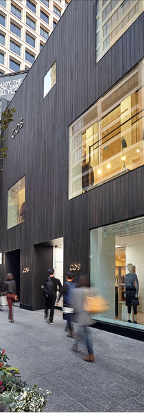 COS, an upscale European retailer, recently expanded into the Canadian retail market. New York-based Office AO was commissioned to bring life to the brand’s 3-story, 6,700 sf flagship location in Toronto’s fashionable Yorkville neighborhood. The modern façade is clad in shou sugi ban charred wood. Inside the store is light and airy, reflecting the same sparse Scandinavian aesthetic found in the menswear, womenswear and kids wear sold at the store.