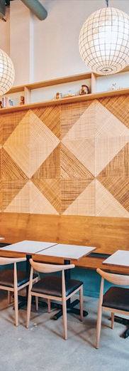 Harnessing the deeply-rooted cultural permanence of Filipino heritage not just in Seattle’s historic Chinatown International District, we worked with Hood Famous Bakeshop to create a space that celebrates its influence on many aspects of Seattle’s ecosystem. We were inspired by the geometric patterns of the batok (traditional Filipino tattoo), specifically the Tinatalaaw, which means “day & night”, and we strive to represent the coffee-to-cocktails program with this motif throughout the space.